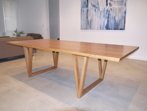 Close up of corner of cherrywood hall table top showing pegs, ageing & French polish finish
